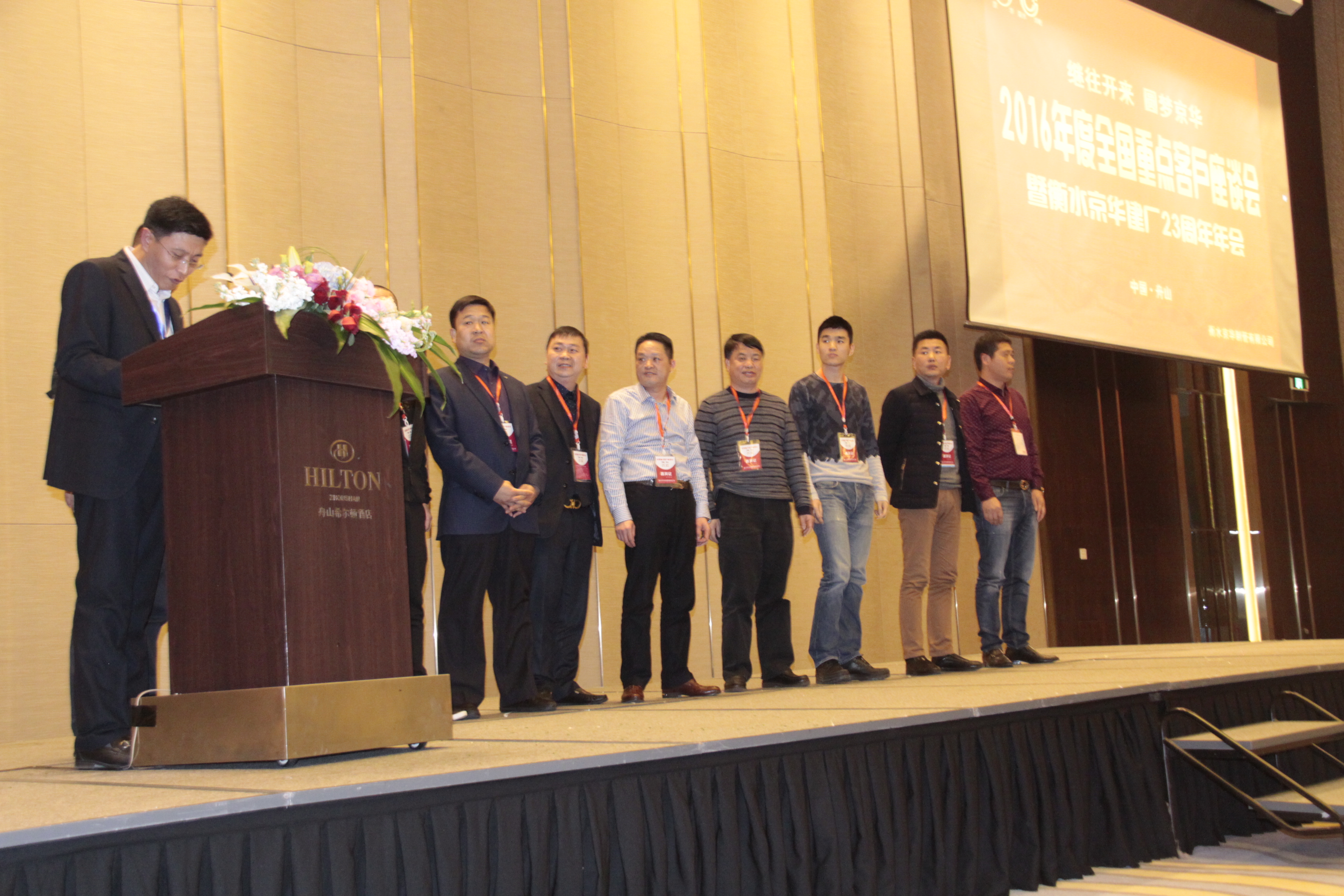 第一部分:公司常务副总于占军作衡水京华2016年工作报告。介绍了衡水京华在温朝福总经理的领导及全体经销商的不懈努力下,销量不断刷新纪录。他表示衡水京华有责任也有能力给全国的用户提供更优质的产品及服务,提供更有力的发展经营空间。宣读衡水京华2016年度销量前三十名客户及合作时间最长的十佳客户名单并颁发奖品。